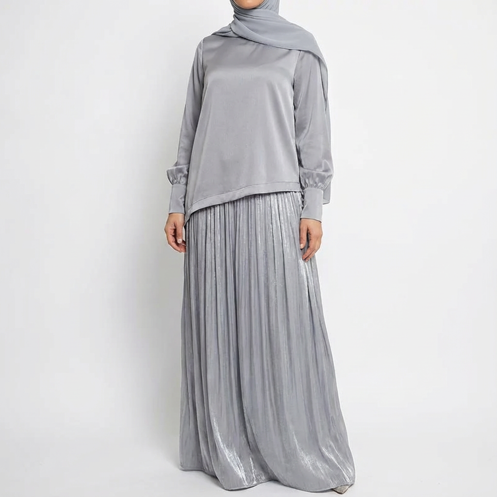 The Lunara Longeset blends fluid elegance with a modern, refined silhouette. The asymmetrical top flows seamlessly into a softly pleated maxi skirt, creating a sophisticated look with a subtle sheen. Designed for both comfort and style, this set elevates any wardrobe.